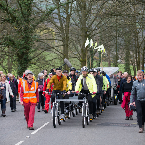 Whilst our director Dave Nelson set about composing new piano music to be played throughout the climb by local, regional and international pianists, sculptor/engineer Andy Plant was brought on board to design and build a bespoke vehicle called the PianoPorté to carry the piano, and to be propelled by, after much consideration, a total of 18 cyclists.